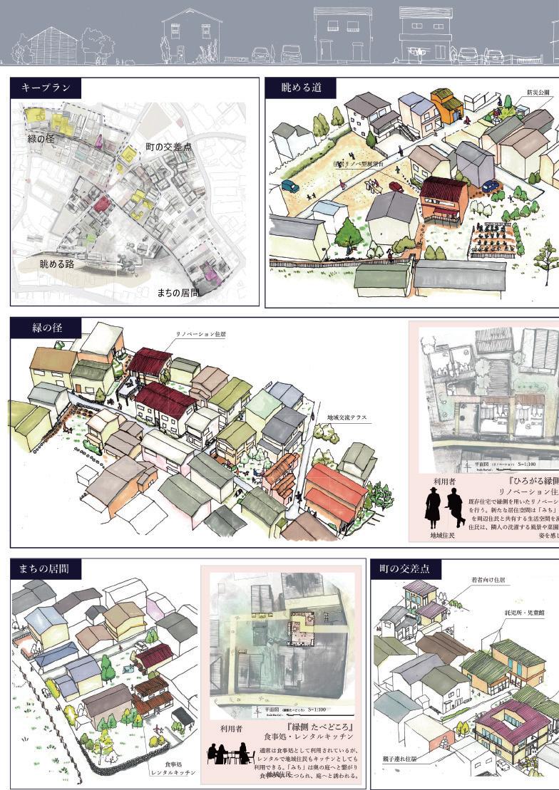 有賀 やっている個々の提案はとてもレ ベルが高く、公共事業でできる話ではな いので、一軒一軒の建物の所有者の意思 との折り合いをどのようにつけるか納得 できる説明がほしい。いまは全体を俯瞰 した図や提案事業の絵もあるが、2枚目 の細かい部分を丁寧に説明し、町がトッ プダウンで行う事業ではないということ がわかるようにしたい。