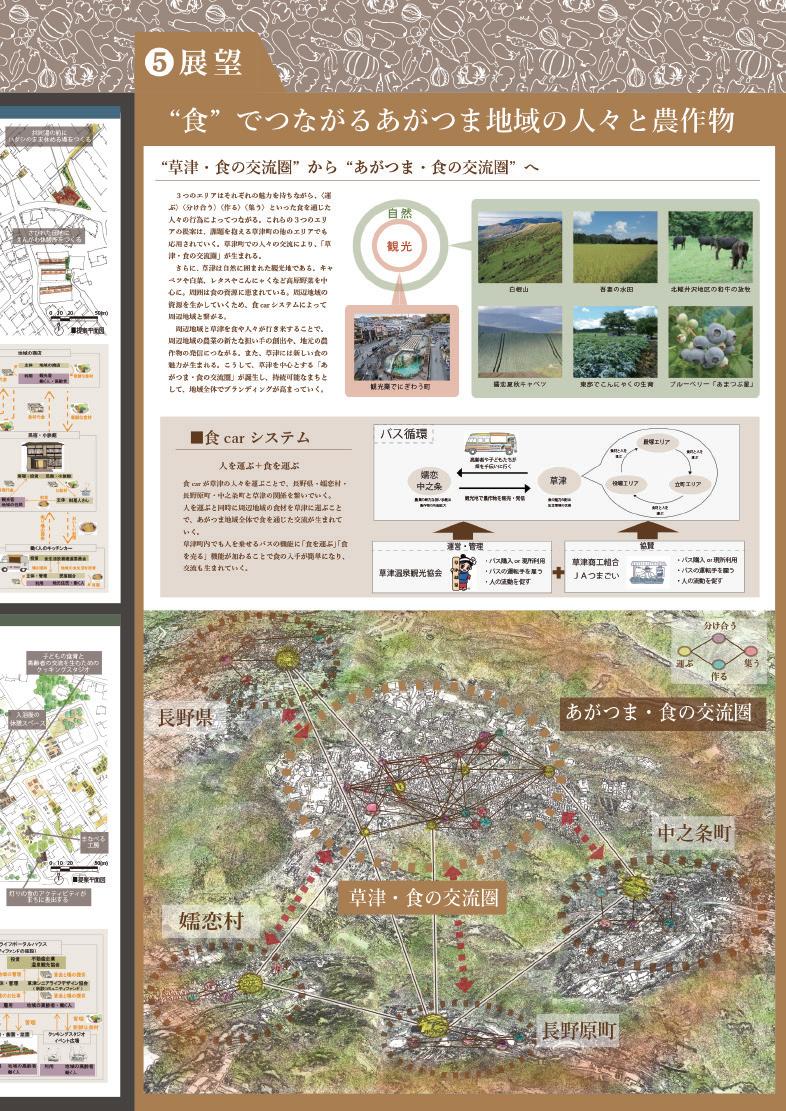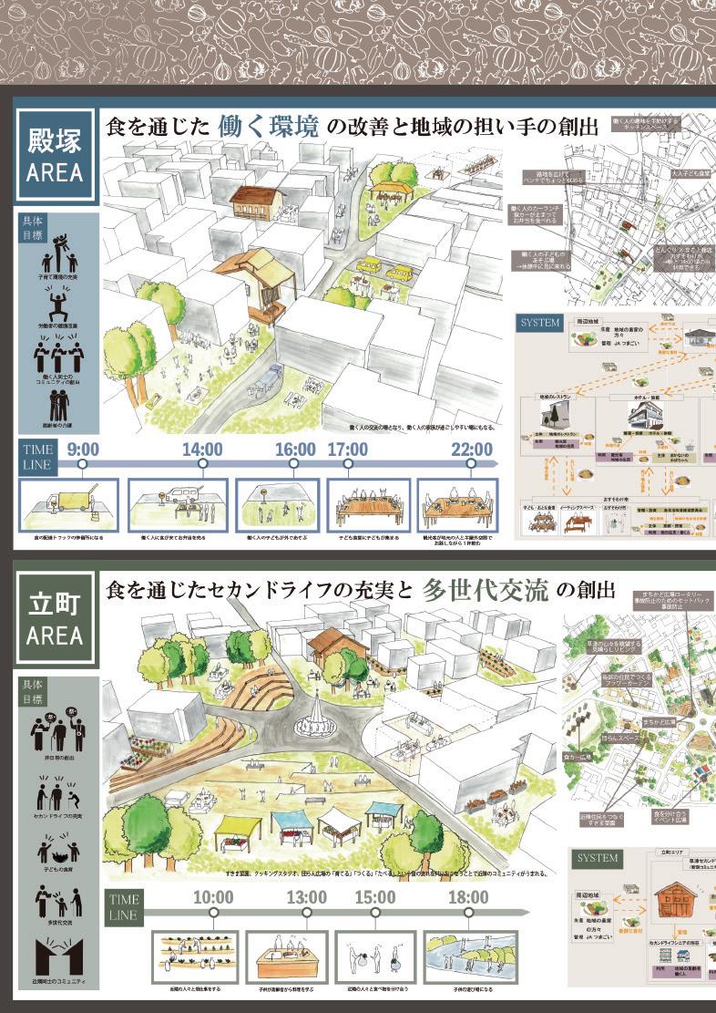 観光を中心に発展してきた草津町。町の担い手減少が深刻 な問題であり、生活環境の整備が求められている。そこで 私たちは、草津町外にある“食”に着目した。草津ならで はの新しい食生活スタイルの提案により、食の観光的活用、 働き手の環境、多世代コミュニティ、を改善する。