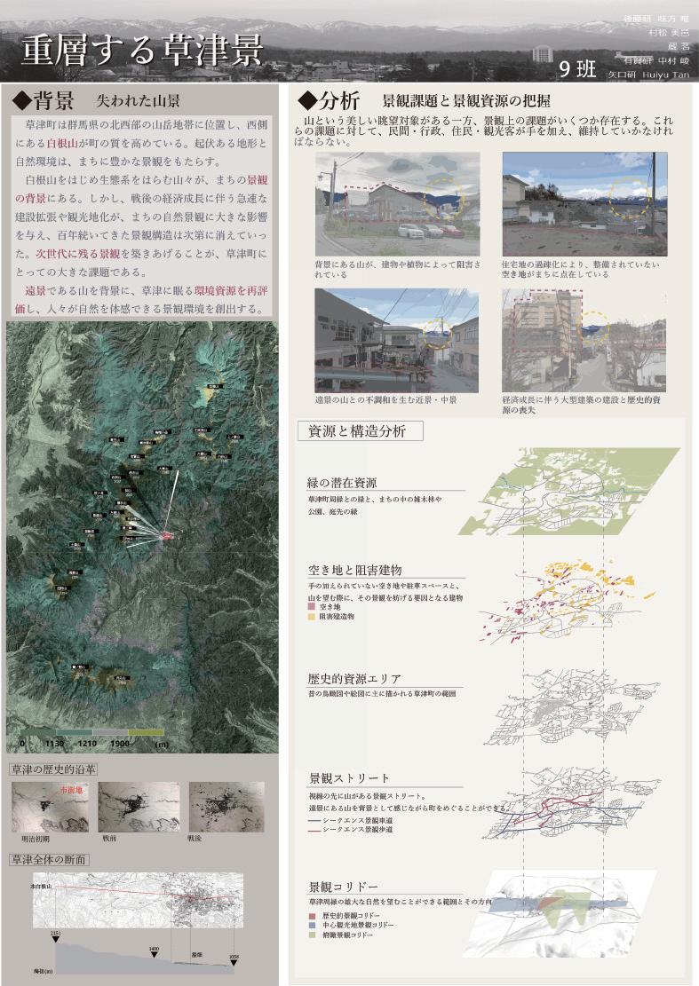 吉江 みなさんが草津の坂をたくさん歩 いて調査したことを我々は知っているが、 それがプレゼンボードに表れていない。