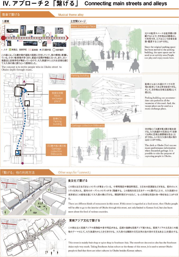 ——おっしゃるとおり、路地の部分を表 通りとつなげることに関しては少し問題 があり、少し意識が足りなかった。ただ、 神楽坂通りとつなげるという提案に関し ては大久保通りの南側の敷地の方を設定 して、何か賑わいを生むような計画にし ようと考えた。