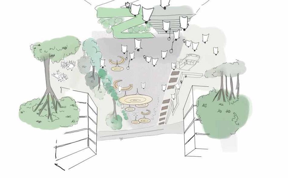 This park connects Central Road to an area with schools and offices. Its main purpose is to create a gradual change from a busy atmosphere to a relaxation space. Tall trees along the walkways will incorporate produce an overall calm and quiet feeling in entire of the park.