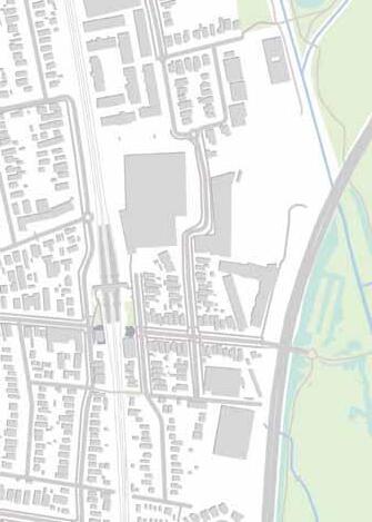 The focus area comprises five buildings and is broadly divided into two main zones: the station building area, which includes the station, and the station-front building area located to its south.