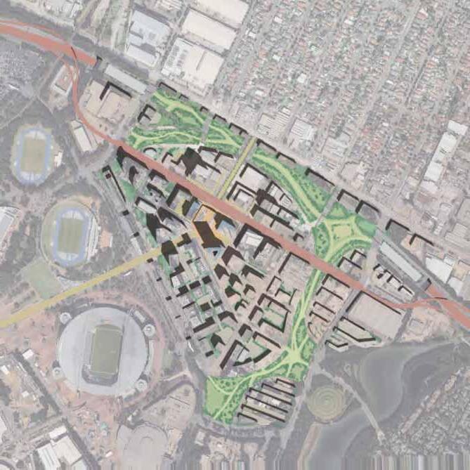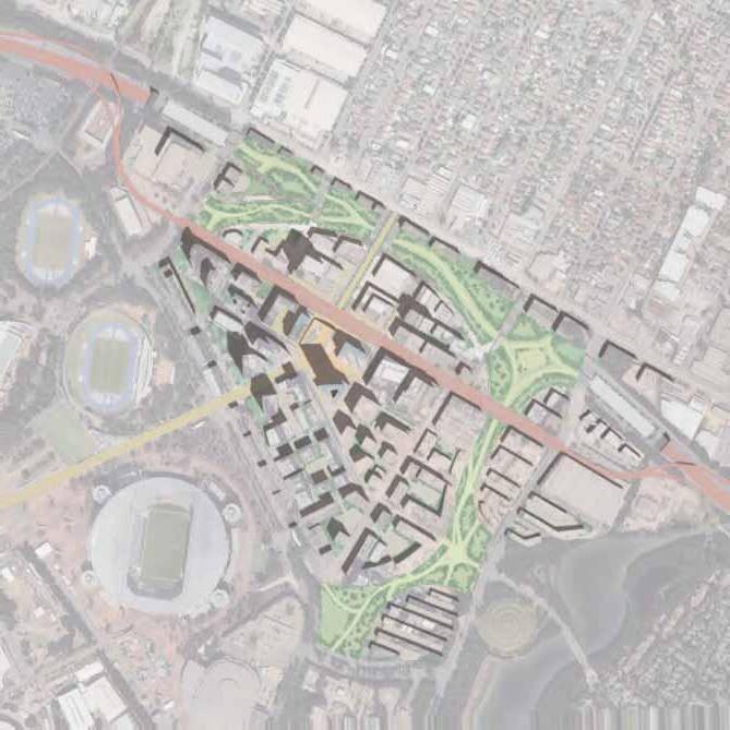 The masterplan’s primary objective is to establish a reconnection over north to south, as a gateway to the district. A landmark tower at its centre will anchor the development, reinforcing its identity as a Central Business District. An integrated station and mixed-use complex, serve as a major transportation hub for bus and LRT services, will draw people from surrounding areas. By creating this central space for activity, significant pedestrian flow and lively neighbourhood will be created, enhancing multiple functions of the entire city.