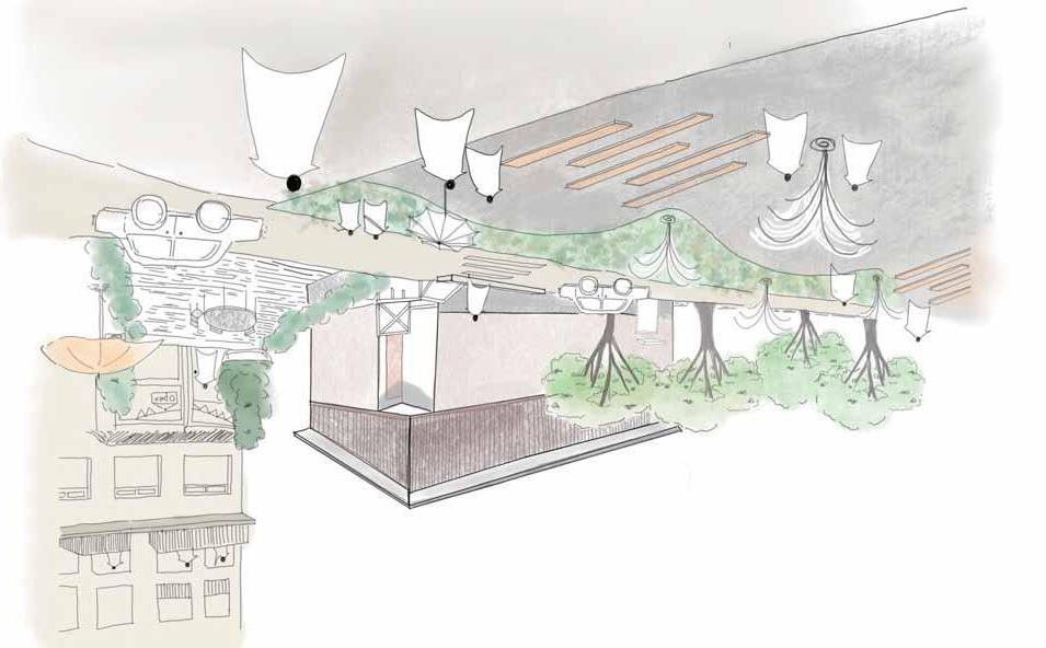 The aim is to develop a complex in the area around the station that welcomes a diverse range of people, attracting local residents and visitors from the station, fostering a bustling atmosphere and becoming a symbol of the city’s individuality.