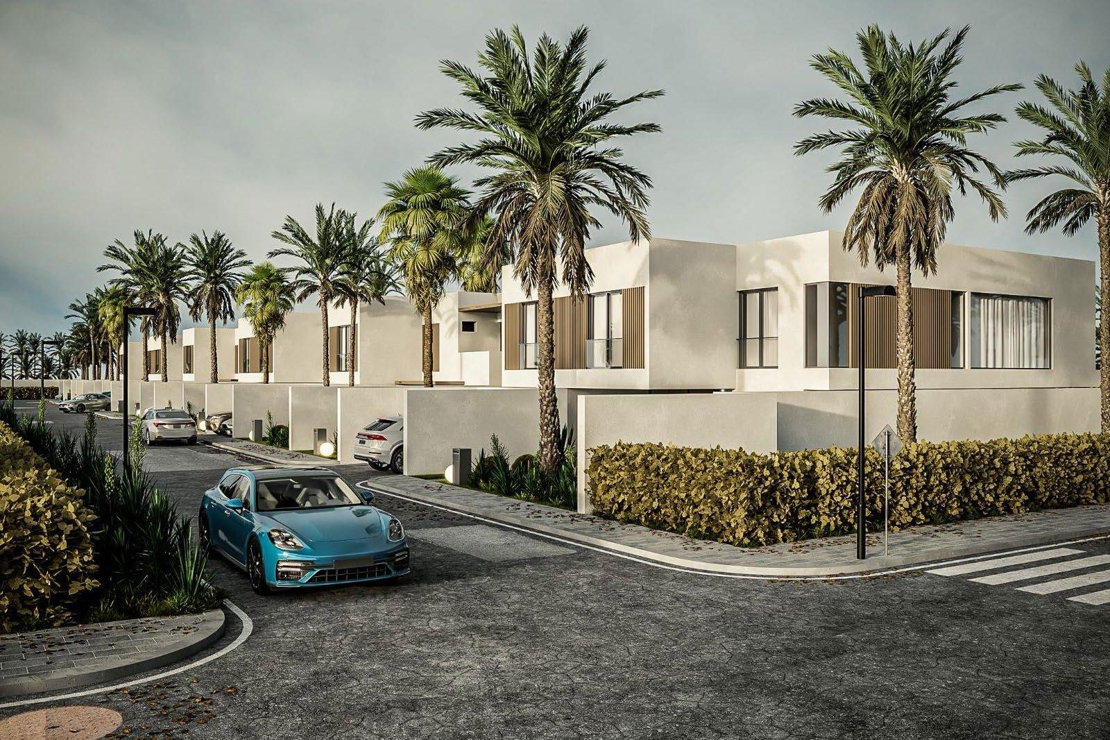 This is a residential project proposal enclave of 12 luxurious and adjacent villas designed for modern living. Each villa boasts pristine white concrete exteriors adorned with warm wood panel details, seamlessly blending sophistication with nature. Residents enjoy the privacy of individual parking lots, private swimming pools, and landscaped gardens, creating an oasis of tranquility.