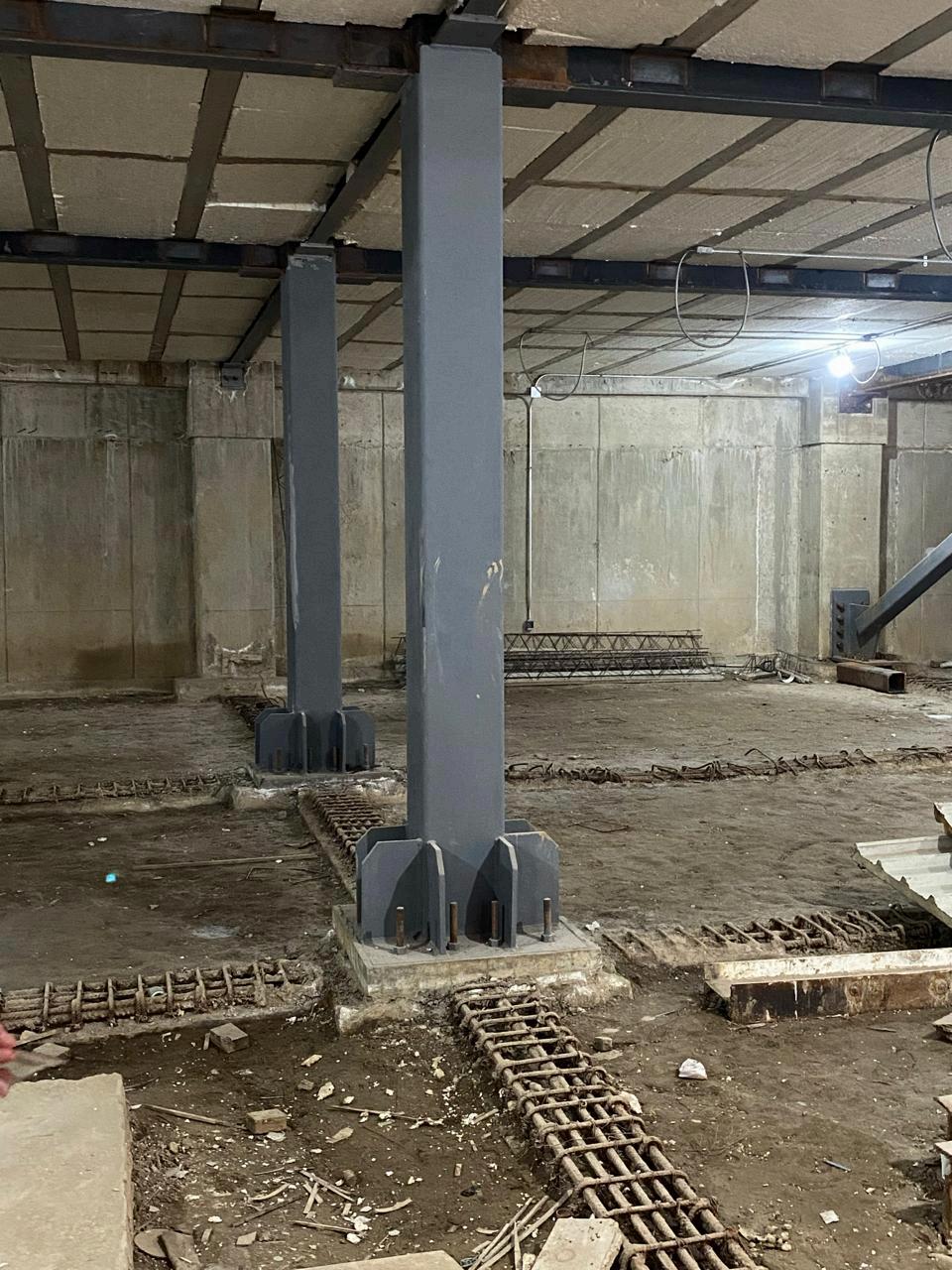 El edificio tiene Pilas de cimentacion y se conecta el acero al concreto con anclas como las que vemos en las fotos.