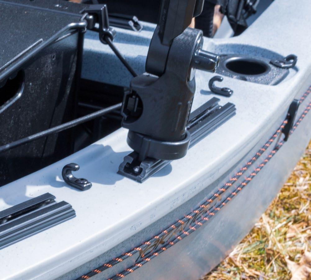 Includes two PadHooks, a combination of a pad-eye and a hook which keep even the tightest trolley lines in place on the side of the kayak, not over your gunwale.