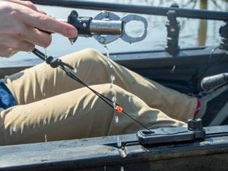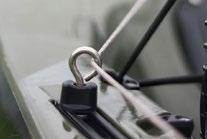 Connects to your anchor or stakeout pole. When not in use, the easy-knot trolley ring snaps into the base of the LeverLoc™, quietly secured until deployed.