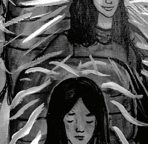 The little girl nestling into her mother’s lap. The two women sharing inside jokes. The couple holding hands and making plans. I see echoes of my own family and friends at home who don’t carry over into college life. On this train, I am everywhere and nowhere, speeding through the liminal space between my two homes.