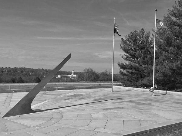 The names of the 20 Kentuckians still listed as MIA or POW are located in front of the gnomon, where the shadow never falls, paying special tribute to their personal agony, and symbolizing our continued vigil for their return.