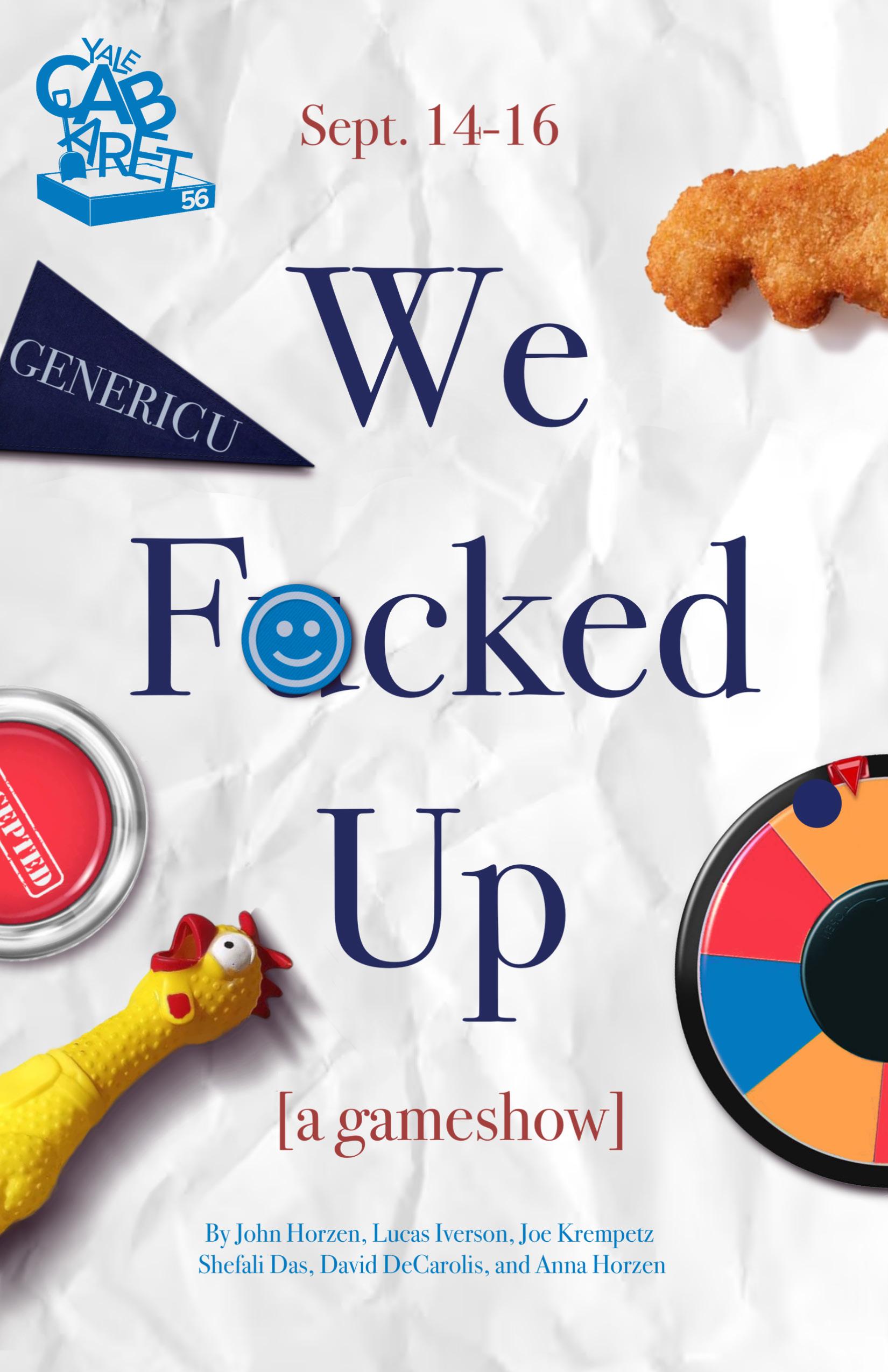 When I look back at the incredible journey that We Fucked Up: A Gameshow has been, the first thing that comes to mind is diced onions. I think of this because John Horzen, the creator and director of WFU, and I were volunteering at the Downtown Evening Soup Kitchen, chopping onions for that night’s dinner, when he told me about a live game show that he proposed for the opening show of Yale Cabaret’s 56th season. He barely finished his pitch when I asked how I could be involved.