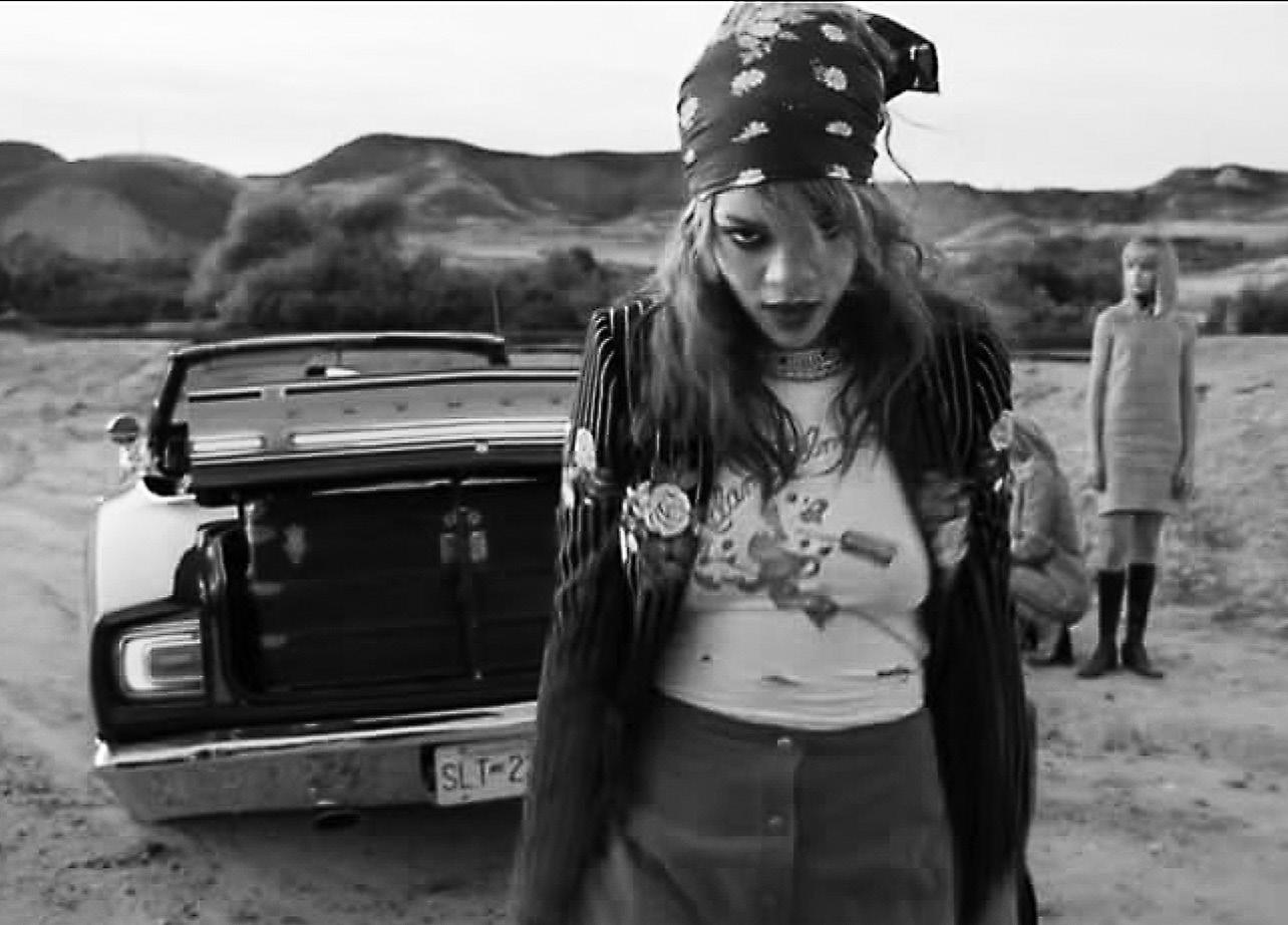 Rihanna in her music video for “Bitch Better Have My Money,” directed by Rihanna and Leo Berne for Megaforce.