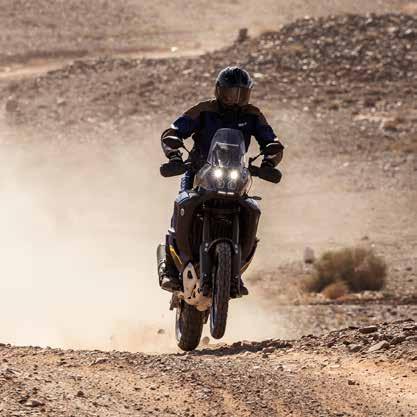 heritage rally racing colours inspired by the factory Yamaha raced by Dakar legend Stéphane Peterhansel, this flagship model features the highest specification, including high-capacity dual fuel tanks and premium KYB long travel suspension, as well as an exclusive Akrapovič muffler and Öhlins steering damper.