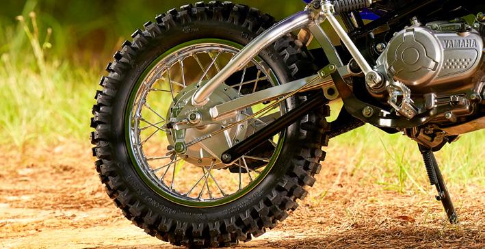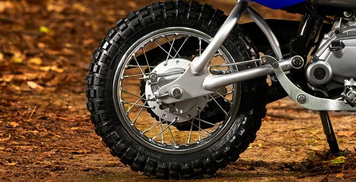 For reliable stopping power, the TT-R110 has drum brakes at the front and rear – and their simple design makes for easy maintenance. Special off-road pattern tyres make this mid-sized youth bike a strong performer in the dirt, while the 14 inch front wheel and 12 inch rear wheel help to handle uneven terrain.