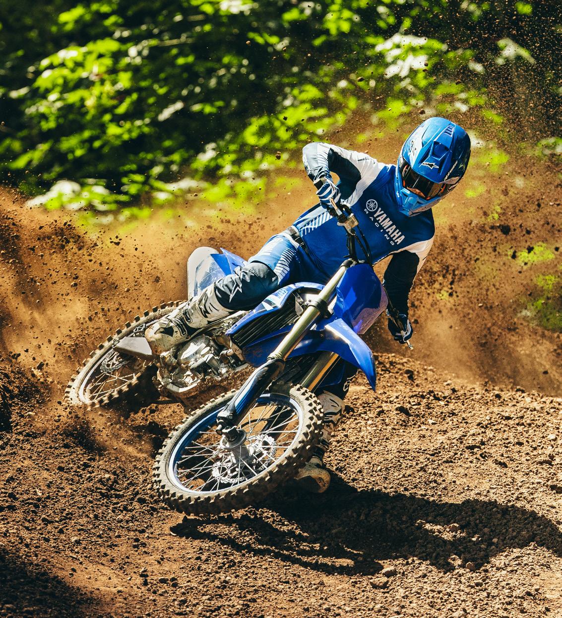 The exhilarating 250cc liquid-cooled engine gives you an instant hit of power for holeshot-winning acceleration – and the YPVS (Yamaha Power Valve System) gives you plenty of torque at low to mid rpm. It’s industry-leading KYB front forks and rear shock give outstanding traction with plenty of surface feedback – and the slimline bodywork and flat seat enable rapid weight shifting when braking, accelerating and cornering. Featuring a racing inspired Icon Blue colour and new graphics, the YZ250 is ready to win.