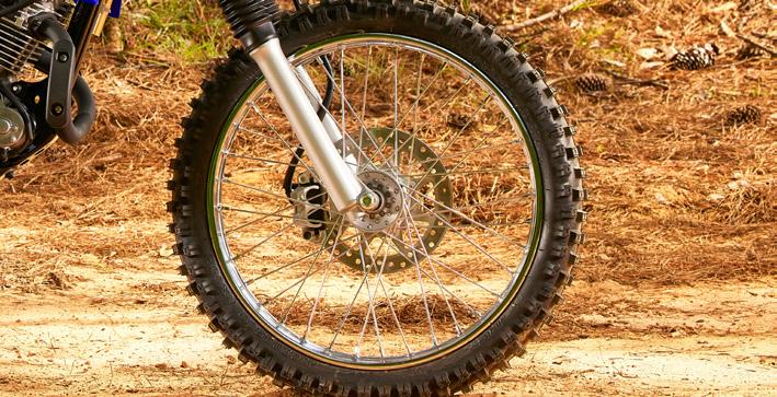 To handle the TT-R125’s punchy performance, the bike is equipped with an efficient 220mm diameter front disc brake that allows the rider to reduce speed with minimum effort. A 110mm drum brake delivers smooth stopping power at the rear end, and for good traction in the dirt the TT-R125 runs on a chunky, 90-section rear tyre.