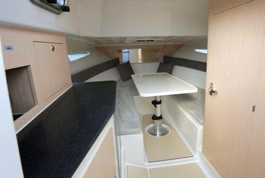 POINTS FORTS : Circulation de pont. Volume de rangement (coffre sous banquette, le plus grand de la catégorie). Poids. Performances et consommation. Ouverture de la console par l'arrière. Qualité du teak. Accès à l’eau.