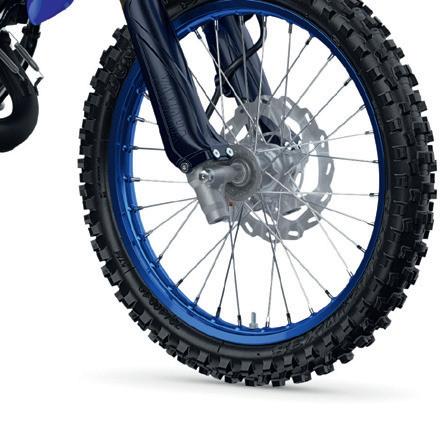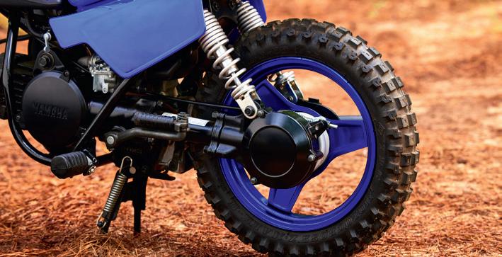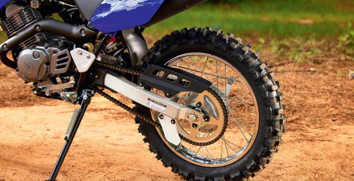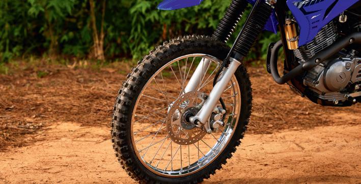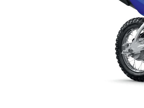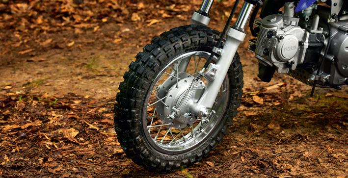 Pour un freinage efficace, la TT-R110 est équipée de freins à tambour à l’avant et à l’arrière, et leur conception simple permet un entretien facile. Grâce à ses pneus spéciaux tout-terrain, cette moto de taille moyenne destinée aux jeunes est très performante en tout-terrain. La roue avant de 14 pouces et la roue arrière de 12 pouces permettent de maîtriser les terrains accidentés.