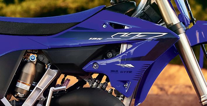 L’habillage est plus affiné que jamais, avec une zone située entre les genoux du pilote la plus étroite jamais offerte sur une YZ125. Ce style athlétique et moderne souligne la légèreté et la compacité de la moto, pour agilité totale du pilote.