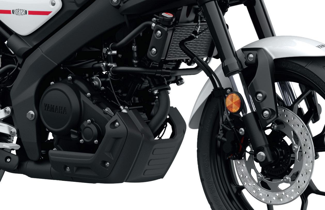 Les jantes en alliage à 10 bâtons de la XSR125 sont chaussées de pneus à sculptures taillées en forme de pavés qui offrent une excellente adhérence. L’association d’un pneu arrière 140/70-17 et d’un pneu avant 110/70-17 offre une sensation de confiance et de maîtrise, qui fait de cette moto agile et légère l’une des meilleures façons de se déplacer en ville.