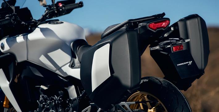 La TRACER 9 GT+ est équipée de poignées chauffantes parfaitement intégrées, de valises rigides, pouvant chacune accueillir un casque intégral, d’un éclairage à LED, de feux adaptatifs en virage, ainsi que d’une béquille centrale : un équipement haut de gamme digne de cette GT accomplie.