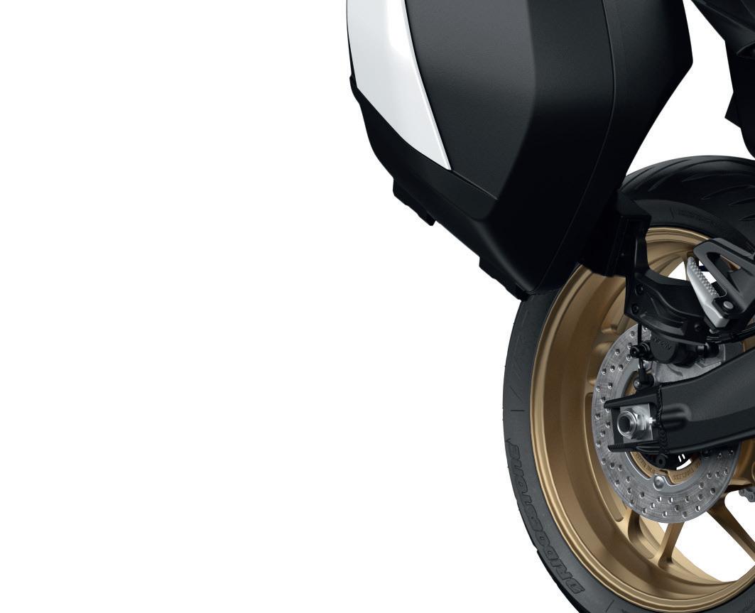 Cette routière sportive dispose des spécifications les plus élevées. L’éclairage intégral à LED, le réservoir léger en aluminium soudé à la main d’une capacité de 18 litres, la ligne et la finition haut de gamme de l’habillage noir ainsi que ses finitions bronze soulignent sa personnalité unique.