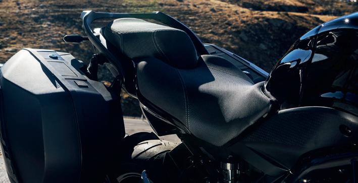 La nouvelle selle bénéficie d’une forme inédite et l’épaisseur de rembourrage au niveau des cuisses a été modifiée, ce qui facilite l’accès au sol et permet de monter et de descendre plus facilement de la moto.