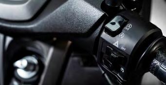 Le système d’aide à la station fixe du Tricity 300 est entièrement séparé des fonctions de suspension, afin de faciliter les manœuvres de stationnement. En maintenant temporairement le Tricity 300 en position droite, il aide également à le placer sur sa béquille centrale. Dès que l’accélérateur du Tricity 300 est actionné, l’aide à la station fixe se désengage automatiquement.