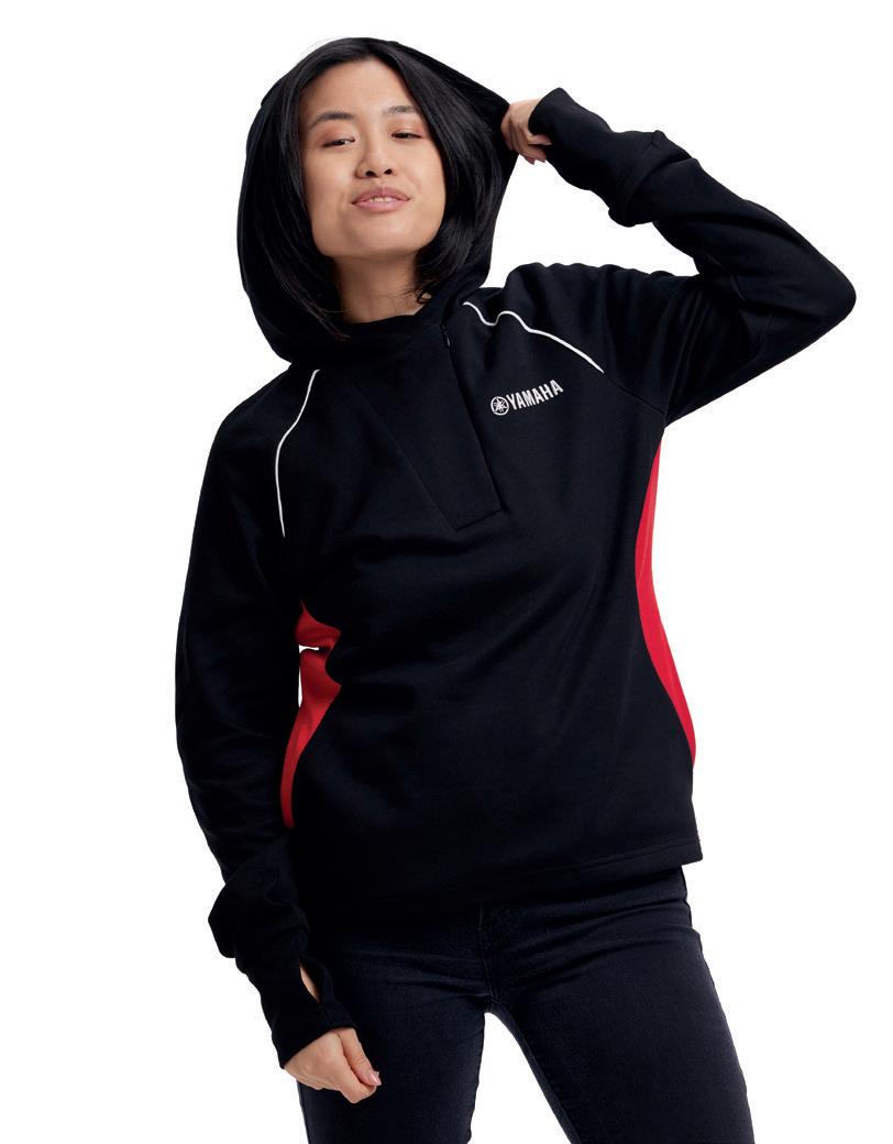 Fabriqué en noir, rouge et blanc dans un mélange de coton et de polyester, le sweat à capuche zippé pour femme REVS inspiré du monde sportif est à la fois tendance et pratique.