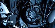 Une des caractéristiques exclusives de la MT-10 SP est son sabot moteur allégé constitué de trois parties qui confère à la moto un look sportif et agressif. Sa forme canalise le flux d’air vers le radiateur d’huile pour offrir des températures de fonctionnement constantes.