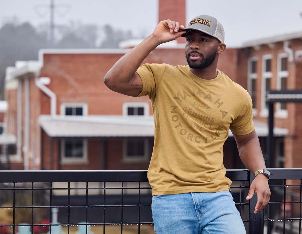 YAMAHA HERITAGE SINCE 55 TEE Mustard | CRP-22THG-TN-(SM-3X) 50% polyester, 25% cotton, 25% rayon