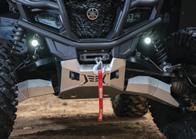 Stylish aluminum Front Skid Plate protects the front drive components from trail debris while complementing the look of your RMAX 1000. Hybrid design of 1/8" brushed aluminum and 1/8" of e-coated and powercoated steel for superior durability.