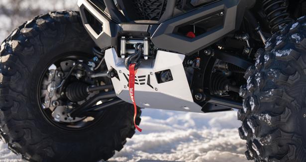 The Yamaha Genuine A-Arm Guards add extra protection to the Wolverine RMAX 1000 A-Arms, CVJ boots, and axle components. Constructed from tough, 1/8" aluminum with a brushed finish to match Front Skid Plate (sold separately), A-Arm Guards utilize factoryintegrated mounting points with OEM-level hardware for unmatched fit and finish.