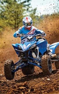 Riders: YFZ50 is recommended for use only by riders 6 years and older and always with adult supervision. Grizzly 90 and Raptor 90 are recommended for use only by riders 10 years and older and always with adult supervision. All other ATV models are recommended for use only by riders 16 years and older. YFZ450/ YFZ450R and Raptor 700/ Raptor 700R recommended for experienced riders only. Dress properly for your ride with a helmet, eye protection, long-sleeved shirt, long pants, gloves and boots. ATVs can be hazardous to operate. Yamaha recommends that all ATV riders take an approved training course. For safety and training information, see your dealer or call the ATV Safety Institute at 800-887-2887. Side-by-Side Riders: Side-by-Side vehicles are recommended for use only by operators 16 years and older with a valid driver's license. YXZ1000R is recommended for experienced operators only. Always wear your seat belt, helmet, eye protection and protective clothing. Yamaha recommends that all Side-by-Side riders take an approved training course. For Side-by-Side safety and training information, see your dealer or call the ROHVA at 866-267-2751. ATV and Sideby-Side Riders: Avoid excessive speeds and never engage in stunt riding. Always avoid paved surfaces and never ride on public roads. And be particularly careful on difficult terrain. Never ride under the influence of alcohol or other drugs; it is illegal and dangerous.