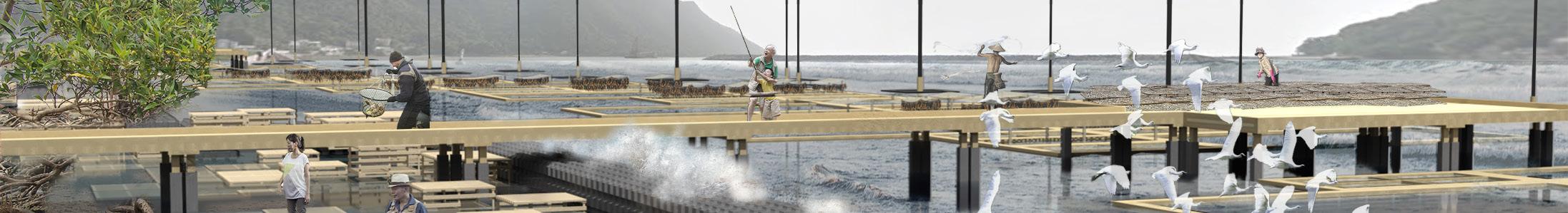 The project proposed to transform the coastline around Tai O with core elements of forming the Bule Carbon Cycle: Mangroves, Salt Mashes, and Marine Farms. Additional ecological facilities were applied to further stimulate ecological circulations, maximizing the ecological benefits provided by the project.