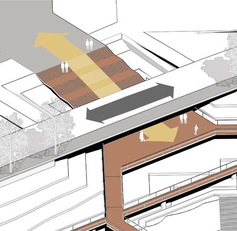 Elevation - Streets, Cultural Gallary & Rooftop Markets Plan - Rooftop Markets Rooftop Markets Booths Booths Booths Booths Booths Benches Benches Benches Stairs Stairs +3m +6m ±0m Stairs N Plan - Streets Streets Booths Booths Booths Stairs Stairs Roadway N 5m 3m