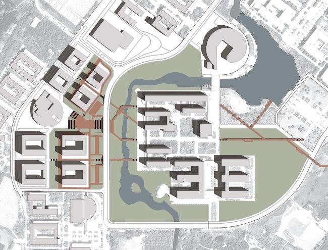 1975 1980 1993 1984 2004 2020 Areas near the site are undeveloped with mainly natural landscapes and sporadic farmlands. SITE Industrial Area Downtown Residential Areas Acient Yellow River Yunlong Lake Neighboring areas are reclaimed as farmlands on large scale. The edge of urbanization reaches the area with basic infrastructures being built. The 3Rd Ring Road of Xuzhou Metropolitan was constructed, urbanizing the surrounding areas. The Municipal Government decided that the site would be used to build the new campus of the university. The site and its surrounding areas have been fully urbanized with no trace of farmlands can be found. 1860 133 2000 2005 2010 2015 Reconstruction Expension Construstion of New Center 2020 Regional Central City 1983 2003 2020 Wheat Wheat Wheat Wheat Wheat Rice Rice Rice Rice Rice Maize Maize Maize Maize Maize Soybean Soybean Soybean Soybean Soybean Potato Potato Potato Potato Potato 2104 197 2KM 3Rd Ring Road 3Rd Ring Road This project demonstrates the possibilities of