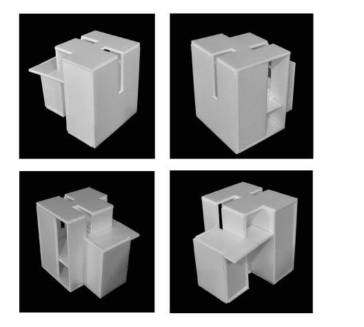 The wall can be firstly defined as a device that primarily divides or demarcates a space. The wall can direct movements through openings or it serve as a barrier among users. The first few explorations investigate how openings are forged within a single wall that elicit the user’s motion or gaze across the plane.