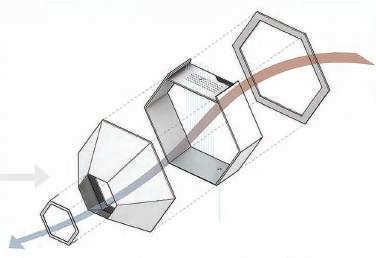Our Hexa-Minate transforms Sim Lim Tower into a lively center of attraction. Utilizing wind, water and light, the facade powers a hydroponics farm, encouraging growth and transformation. By breathing life into our facade, the project aims to revamp the multi-story carpark incorporating pop-up spaces with an urban farming initiative. With the honeycomb as a skeleton, cells performing planting, cooling and shading protrudes out from within, forming a heterogeneous hive.An ongoing growth within the facade, the organic landscaping of plants creates an urban green corridor bringing in existing greenery to the interior, reviving the program and spaces within.