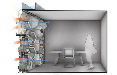 As the edible cells are grouped based on human height, static plant cells are interspersed between the gaps to achieve a more organic outlook that will continue to SE facade.