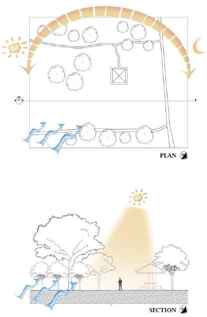 LOCATION PLAN NE SE 12pm 1pm 2pm 3pm 7pm 7am SUN PATH PLANT WATER TANK COOLING SUN PATH WIND INTENSITY EXISTING GREENERY