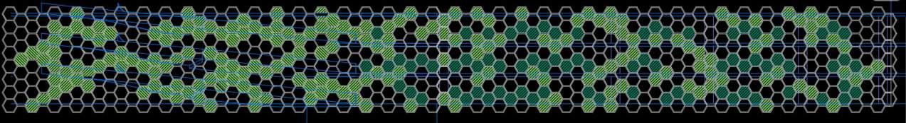 ZONES 3 & 4: At zones further away from the sun, cool region crops will be used. Since these zones are closer to the wind direction, there will be a higher percentage of cooling cells relative to edible cells.
