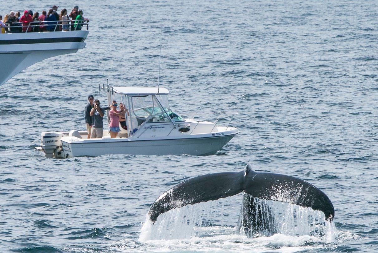 New England Aquarium Whale Watch • After checking out the whale skeleton hanging in the New England Aquarium, you may be inspired to see a whale in the wild. Good news: The aquarium partners with Boston Harbor City Cruises to take passengers on an unforgettable trip to Stellwagen Bank National Marine Sanctuary, an 842-square-mile refuge that provides a seasonal home for marine life of all kinds, especially whales. cityexperiences.com/boston/city-cruises/whale-watch