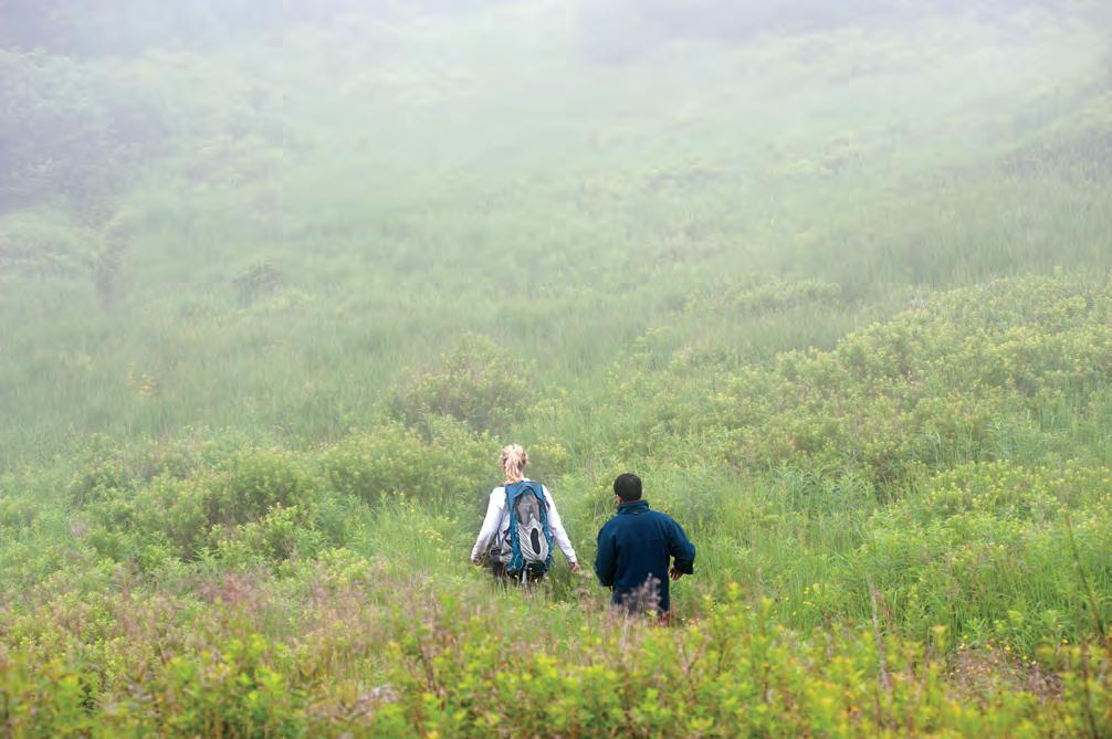 A visit here is a commitment—not just of time, but of mindset. The Bold Coast’s beauty lies in its lack of polish. It’s raw and untamed. Nature, as it’s found here, hasn’t been reduced to some pre y painting for visitors to come and gaze at. Instead, it encourages interaction: to work up a sweat, to get a li le muddy, to dangle your feet atop a blu . It’s a bold idea, indeed, but if you can slow down enough to do it, you just might discover that there are still some places where you truly can get away. —Ian Aldrich