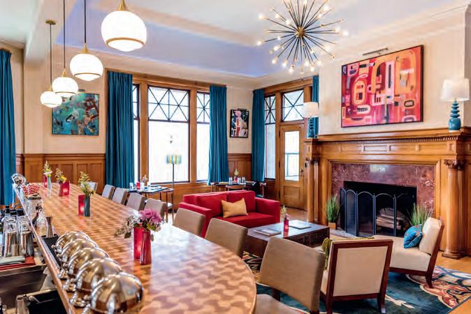 Co-owner Melody French describes her restaurant, nestled inside a former library, as “a rich layer cake of local community and literary history with a sweet midcentury modern ganache.” The ganache in question? Deep-blue low-profile sofas, sleek armchairs, and plenty of color. thesilverforkvt.com