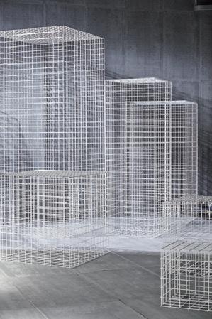 The two shaped tables can be used individually or in combination. When used alone, it can be used as a bar for making coffee, and when used in combination, it can be used as a large table for parties. Path can be changed by combining and splitting each block. Each block has function of display, allowing people to enjoy the exhibits while playing in the maze. This space appeals to both adults and children.