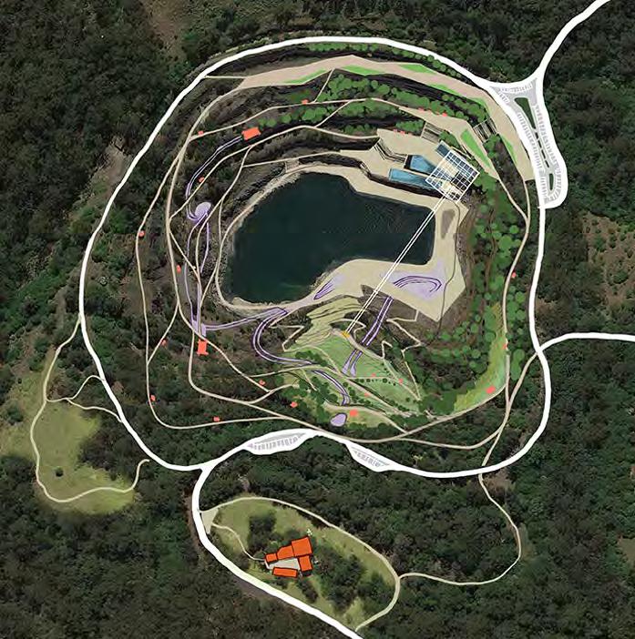 It is expected to be an important tourist attraction in Sydney in the future with its unique geological features and development. The inspiration of the whole design is gravity. During the site visit, the bottom of quarry was like a huge magnet constantly attracting me to slide down. The sense of imbalance made me nervous and curious----leading me to explore the mysterious bottom of the quarry. Therefore, the purposes of my design are to let all groups of people, all abilities enjoy exploration and have fun.