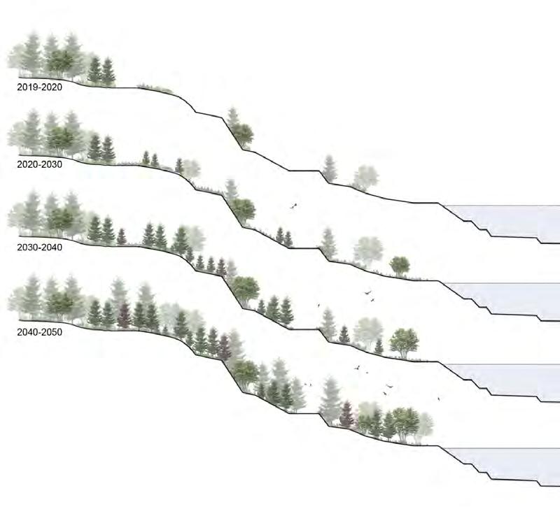 The original trees are preserved, proposed trees are planted, Construction starts from the foundation. Some compacted areas will be planted more vegetation.