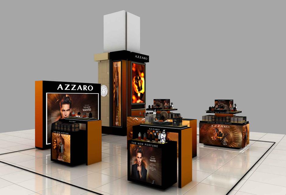 A temporary pop up retail display designed for AZZARO at SOGO Mall, focusing on brand identity, product visibility, and customer circulation within a high-traffic retail environment. The design translates the brand into a refined spatial experience while remaining practical for installation.