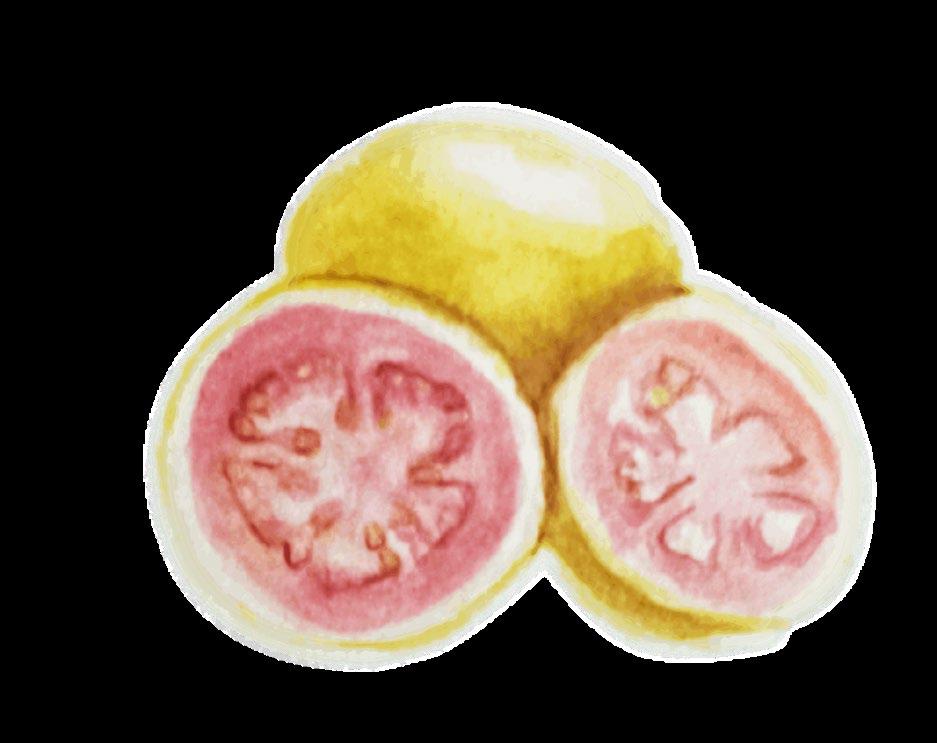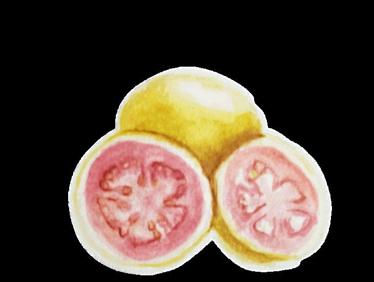 La guayaba contiene mucha agua y pocas calorías y es rica en vitamina A, E, D12, hierro, cobre, calcio, magnesio, potasio, manganeso y fósforo.